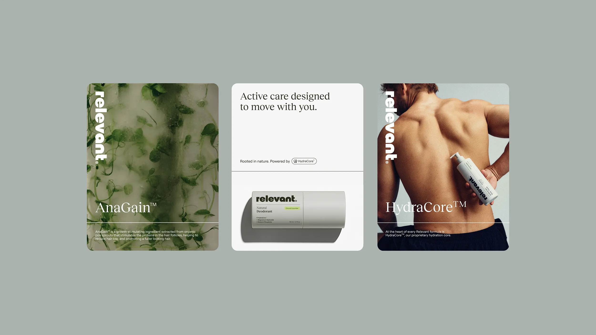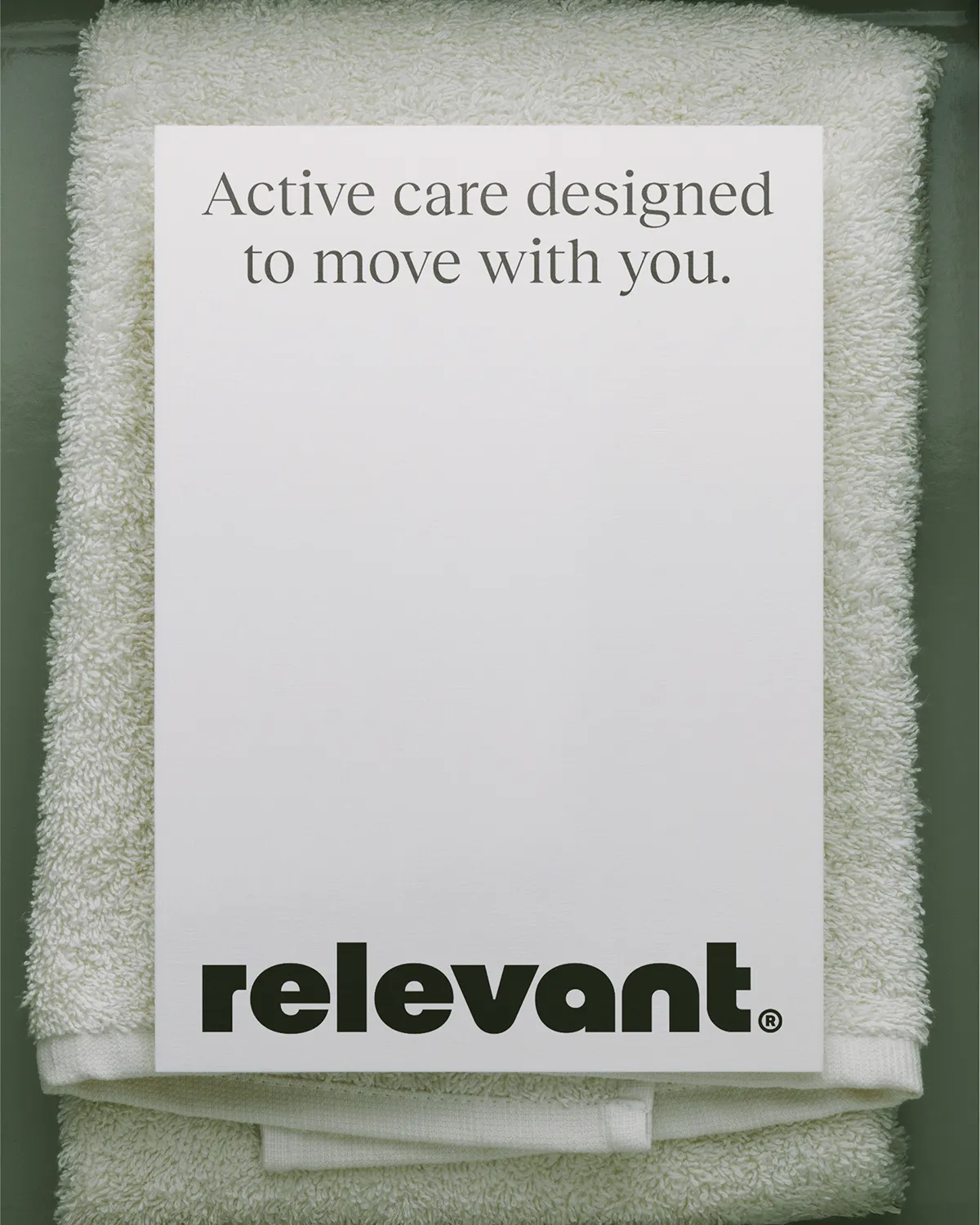 The result is a brand that connects product and perspective, making Relevant stand out through a more human and holistic approach to care.
