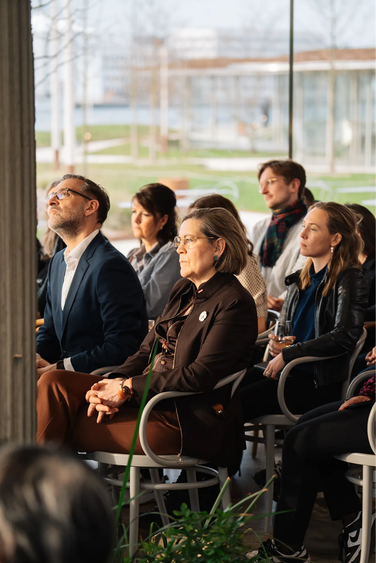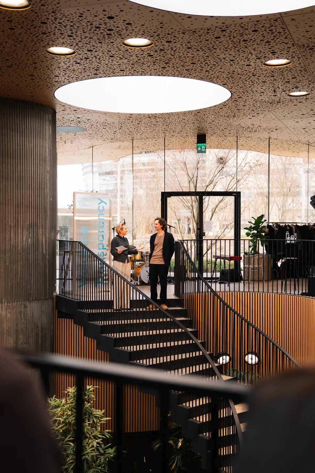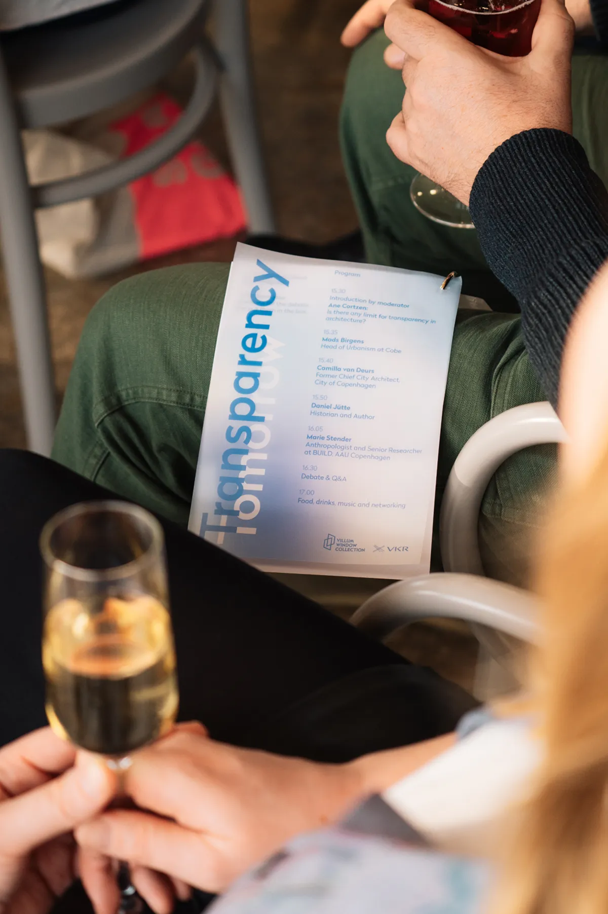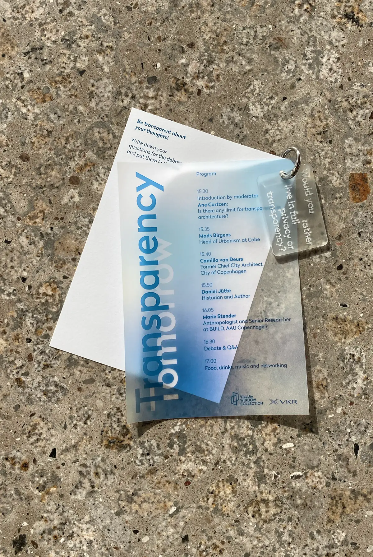 Transparency Tomorrow, an event that explored the many sides of transparency in modern architecture, covering both historical and social aspects. In developing the event concept, we explored the questions: Is architecture becoming too transparent? What role does glass play in our lives, and how can we weave these challenges into the event experience? Our research led to an interactive, transparent event concept and visual identity centered around a dynamic stage program at the stunning Væksthuset, where glass dominated the space. Guests received a question sheet for the panel discussion and a transparent keychain featuring debate questions. Every detail, from the catering to the overall design, embraced the theme of transparency.