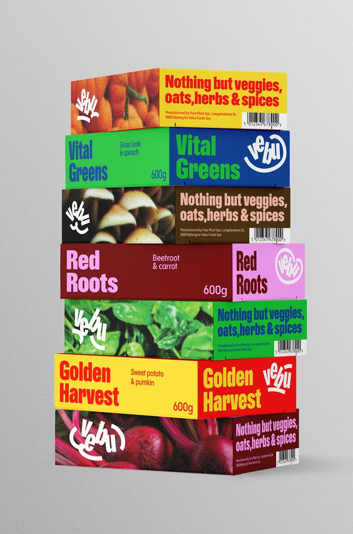 Vebu brought us their quality veggie patties, renowned for their bold flavors. Our goal? To create a Brand Identity and foundation that would distinguish them in competitive, vegan-value driven markets, and showcase their beliefs and personality. We developed the platform ‘Nothing but Flavor,’ reflecting Vebu’s commitment to pure products – just veggies, no nasty filleres. A platform that helps them cut through the noise and focus on what’s important. This concept inspired our Visual Identity – vibrant, playful, echoing the joy of their products. Vebu offers a flavorful alternative, driven be their belief in vegetables and honest recipes, rather than an attempt to imitate meat. It’s simple, easy to cook, sincere, and a source of joy for all.